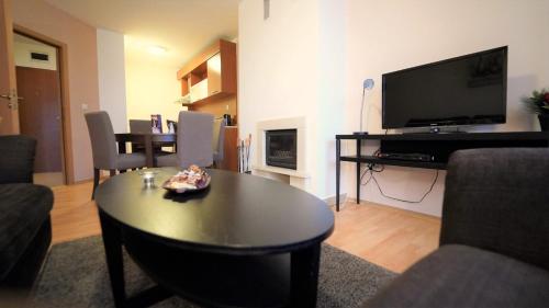 Guests will have a special experience as the apartment features a fireplace. This apartment consists of 1 living room, 1 separate bedroom and 1 bathroom with a shower and free toiletries. The well-equipped kitchen features a stovetop, a refrigerator, kitchenware and an oven. Featuring a terrace with mountain views, this apartment also provides soundproof walls and a flat-screen TV with cable channels. The unit offers 3 beds.