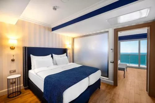 Dimensiuni: 36 mp Numar de camere: 4 camere Camera dublă spațioasă are aer condiționat, minibar, balcon cu vedere la mare, precum și baie privată cu duș. Unitatea de cazare are 1 pat. Baie privată cu duș