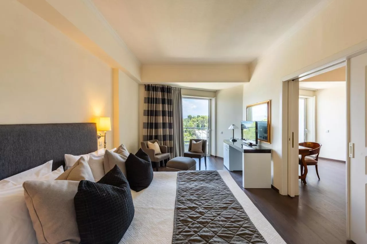 Bucătărie: Mașină de cafea Masă Produse de curățenie General : Seif Pardoseală de lemn sau parchet Fier de călcat Încălzire Cameră(e) comunicantă(e) disponibilă(e) Aer condiţionat Accesibilitate: Etaje superioare accesibile cu liftul Media/Tehnologie: TV cu ecran plat DVD player TV Telefon Servicii: Serviciu de trezire Zonă de living: Canapea Zonă de relaxare Zonă de luat masa Exterior: Mobilier de grădină Terasă Balcon Baie: Prosoape Articole de toaletă gratuite Uscător de păr Prosoape/lenjerie de pat contra cost Toaletă Duş Hârtie igienică Cadă Baie privată Mâncăruri și băuturi: Aparat pentru prepararea de ceai/cafea Dormitor: Lenjerie de pat Garderobă sau dulap