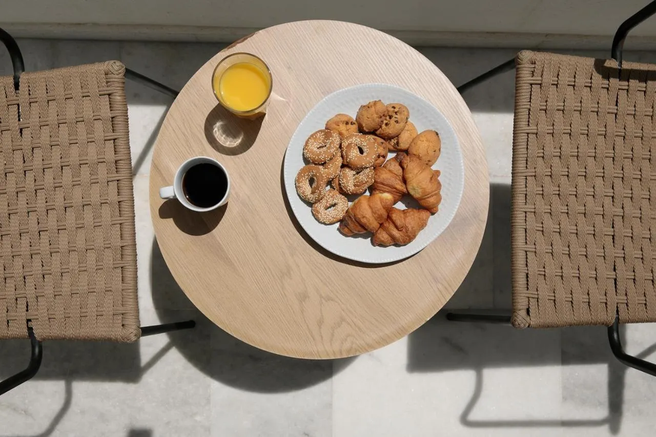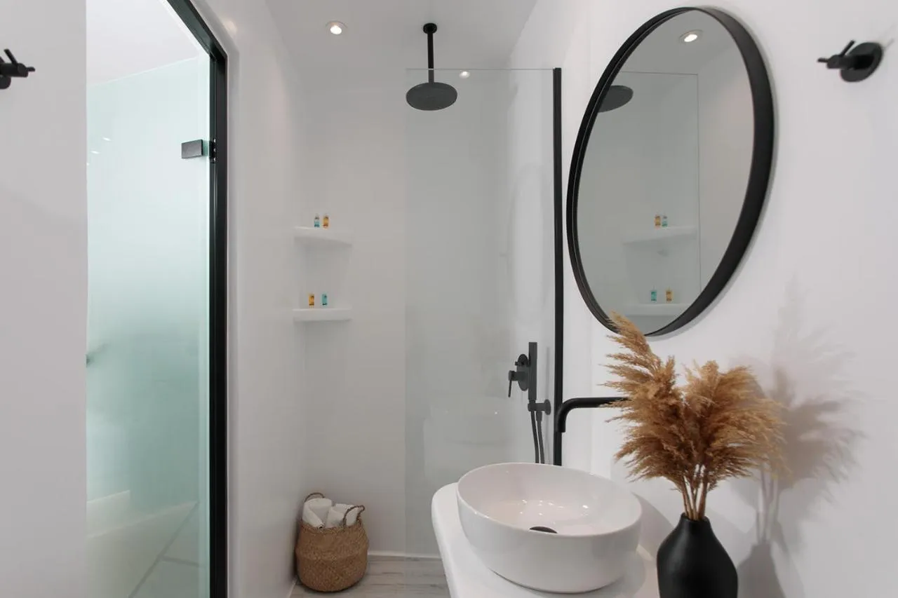 Reședința în stil cicladic, albastră și albă, oferă camere cu gust, cu baie proprie, toate dotate cu balcon privat. Fiecare dispune de un televizor, seif și frigider, în timp ce unele oferă și un cabină de hidromasaj.