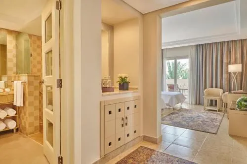Dimensiuni: 58 mp Numar de camere: 14 camere Această suită Junior oferă interior elegant și are un dormitor cu pat king-size și o zonă de relaxare frumos amenajată și dotată cu o canapea; de asemenea, are vedere la piscină sau la grădină, potrivită tuturor oaspeților care își doresc o vacanță încântătoare.