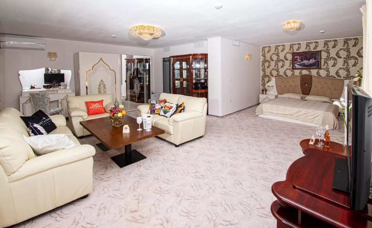The spacious apartment features a minibar, a wardrobe, a sofa, a carpeted floor, as well as a TV with cable channels. The unit has 4 beds.