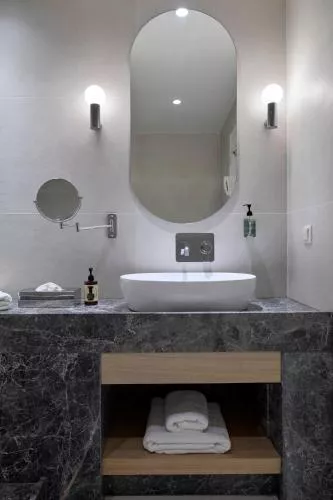 Dimensiuni: 48 mp Numar de camere: 5 camere Include baie din marmură cu cadă și duş, precum şi articole de toaletă de lux. Oferă decor elegant. Unele camere oferă acces direct la grădină, iar altele au balcon. Baie privată cu cadă