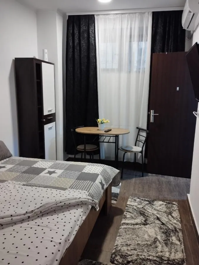 Dimensiuni: 45 mp Numar de camere: 1 camera The studio features air conditioning, a tea and coffee maker, as well as a private bathroom boasting a bath or a shower and a hairdryer. The kitchen features a refrigerator, kitchenware and a microwave. This studio offers heating, a flat-screen TV and a quiet street view. The unit has 2 beds.