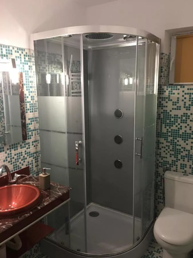 Dimensiuni: 12 mp Numar de camere: 2 camere Offering free toiletries, this double room includes a private bathroom with a walk-in shower, a hairdryer and slippers. The double room offers a flat-screen TV with cable channels, soundproof walls, a tea and coffee maker, a wardrobe as well as mountain views. The unit has 1 bed. Baie privată cu duș