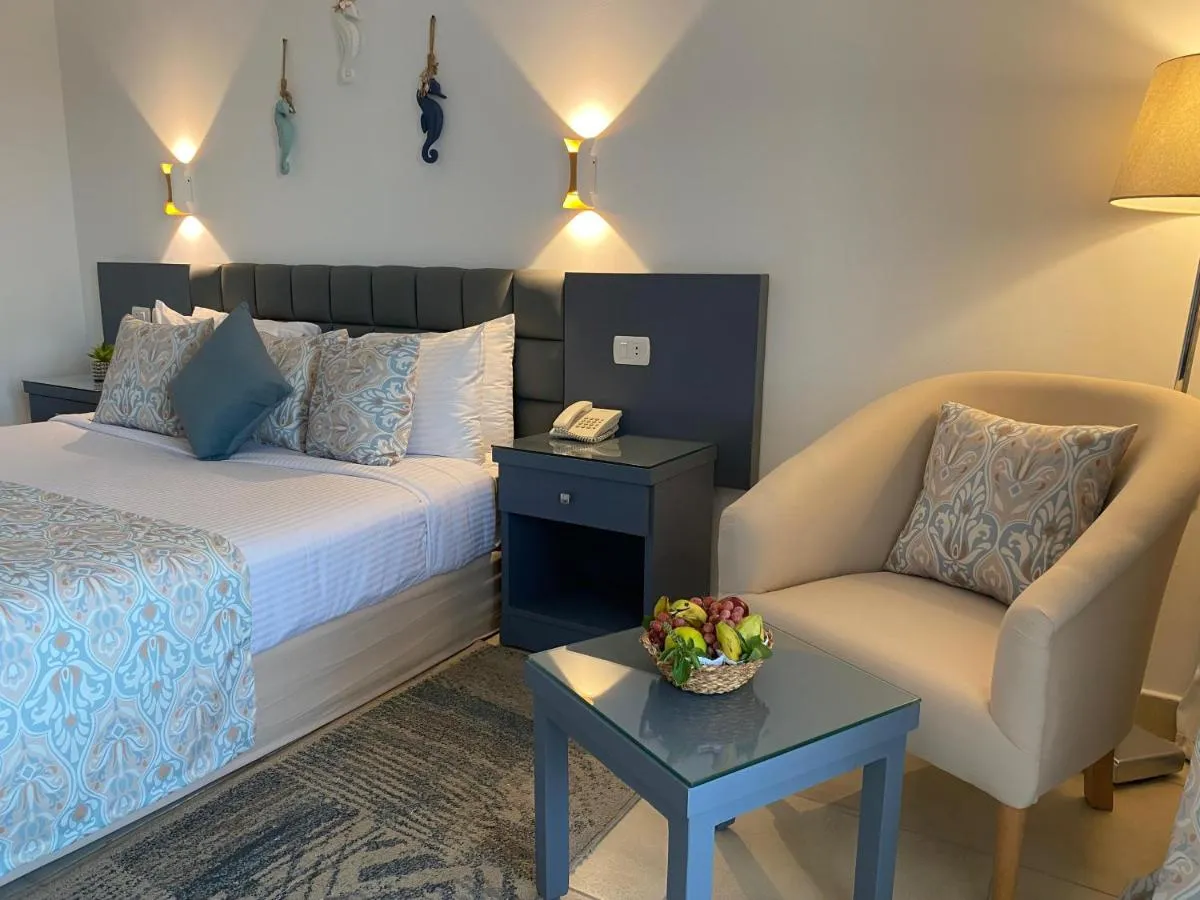 Camerele de la Hotelul Sharm Reef includ un balcon sau o terasă cu vedere la grădină sau la piscină și aer condiționat. Unele camere includ o bucătărie cu zonă de luat masa.