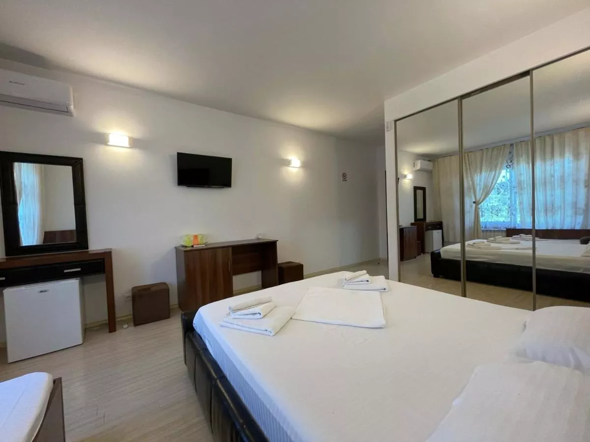 Dimensiuni: 28 mp Numar de camere: 1 camera Această cameră triplă include baie privată cu duș tip walk-in, cadă, bideu și articole de toaletă gratuite. Camera triplă are aer pereți izolați fonic, aer condiționat, TV cu ecran plat cu canale prin cablu, minibar, zonă de luat masa și vedere la mare. Unitatea de cazare este prevăzută cu 2 paturi.