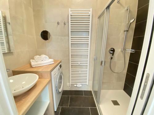 Dimensiuni: 30 mp Numar de camere: 1 camera The apartment features 1 bedroom and 1 bathroom with a shower and free toiletries. In the fully equipped kitchen, guests will find a stovetop, a refrigerator, a dishwasher and kitchenware. The apartment provides a washing machine, soundproof walls, a tea and coffee maker, a flat-screen TV with streaming services, as well as a quiet street view. The unit offers 1 bed. Baie privată cu duș