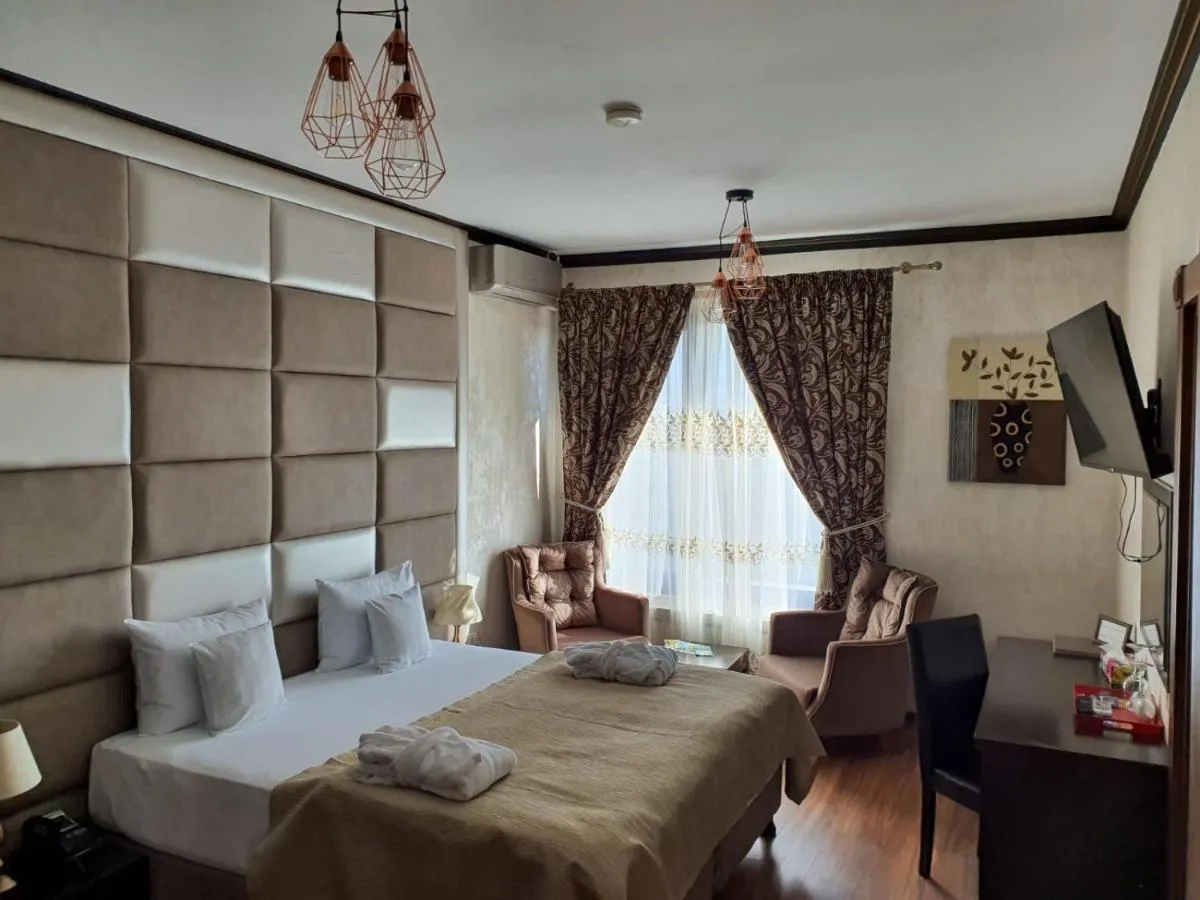 Dimensiuni: 30 mp Numar de camere: 2 camere Camere moderne și foarte spațioase, cu zonă de relaxare, aer condiționat, TV prin cablu, baie privată și vedere la mare. Baie privată cu cadă