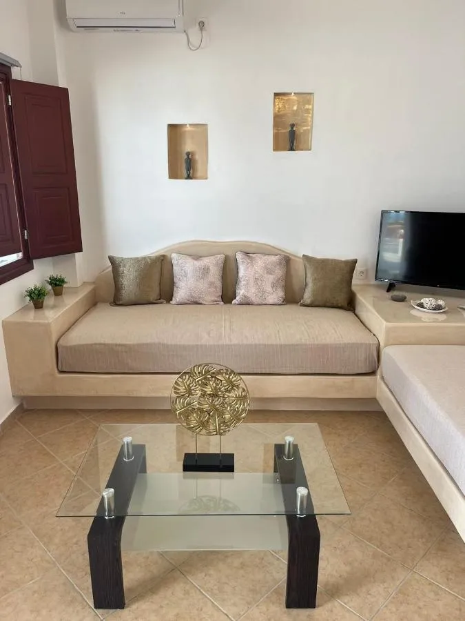 Dimensiuni: 50 mp Numar de camere: 1 camera This apartment's standout features are the pool with a view and fireplace. Featuring a private entrance, this air-conditioned apartment comprises 1 living room, 2 separate bedrooms and 1 bathroom with a shower and a hairdryer. The well-equipped kitchen features a stovetop, a refrigerator, kitchenware and an oven. Boasting a terrace with sea views, this apartment also provides soundproof walls and a flat-screen TV with cable channels. The unit offers 3 beds.
