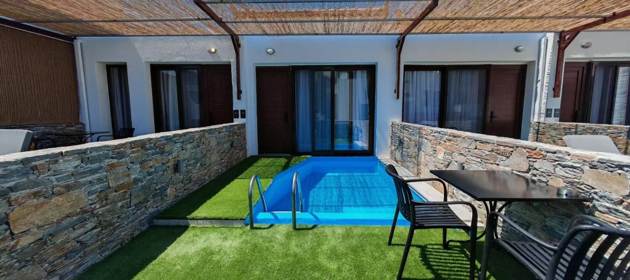 Dimensiuni: 21 mp Numar de camere: 1 camera This suite features a private pool. The air-conditioned suite has 1 bedroom and 1 bathroom with a shower and a hairdryer. This suite features soundproof walls, a wardrobe, a flat-screen TV with satellite channels and a terrace. The unit has 2 beds. Baie privată cu duș