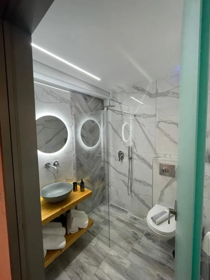 Media/Tehnologie: TV cu ecran plat TV Canale prin cablu Canale prin satelit Vedere: Vedere la munte Vedere la curtea interioară Vedere la grădină Vedere la râu Exterior: Mobilier de grădină Terasă Grătar Balcon Zonă de luat masa în aer liber General : Fier de călcat Pardoseală de gresie/marmură Intrare privată Încălzire Aer condiţionat Izolare fonică Zonă de living: Zonă de relaxare Canapea Dormitor: Lenjerie de pat Paturi extra lungi (> 2 metri) Garderobă sau dulap Bucătărie: Ustensile de bucătărie Produse de curățenie Masă Frigider Plită de gătit Chicinetă Cană fierbător Bucătărie Facilităţile camerei: Canapea extensibilă Priză lângă pat Baie: Hârtie igienică Prosoape Uscător de păr Toaletă Duş Baie privată Accesibilitate: Etaje superioare accesibile doar pe scări Caracteristicile clădirii: Semi-independentă Apartament privat în clădire Independentă Mâncăruri și băuturi: Aparat pentru prepararea de ceai/cafea Distanțare fizică: Aer condiționat individual pentru fiecare cameră de la proprietate Curățenie și dezinfectare: Dezinfectant pentru mâini