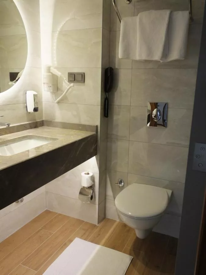 General : Seif Facilităţi de călcat Hipoalergică Pardoseală de gresie/marmură Izolare fonică Aer condiţionat Accesibilitate: Etaje superioare accesibile cu liftul Întreaga unitate accesibilă cu scaunul cu rotile Media/Tehnologie: TV cu ecran plat TV Telefon Canale prin satelit Servicii: Serviciu de trezire Facilităţile camerei: uscător de rufe Priză lângă pat Baie: Prosoape Articole de toaletă gratuite Uscător de păr Toaletă Duş bideu Hârtie igienică Baie privată Zonă de living: Zonă de relaxare Exterior: Balcon Dormitor: Lenjerie de pat Garderobă sau dulap Mâncăruri și băuturi: Minibar Bucătărie: Cană fierbător