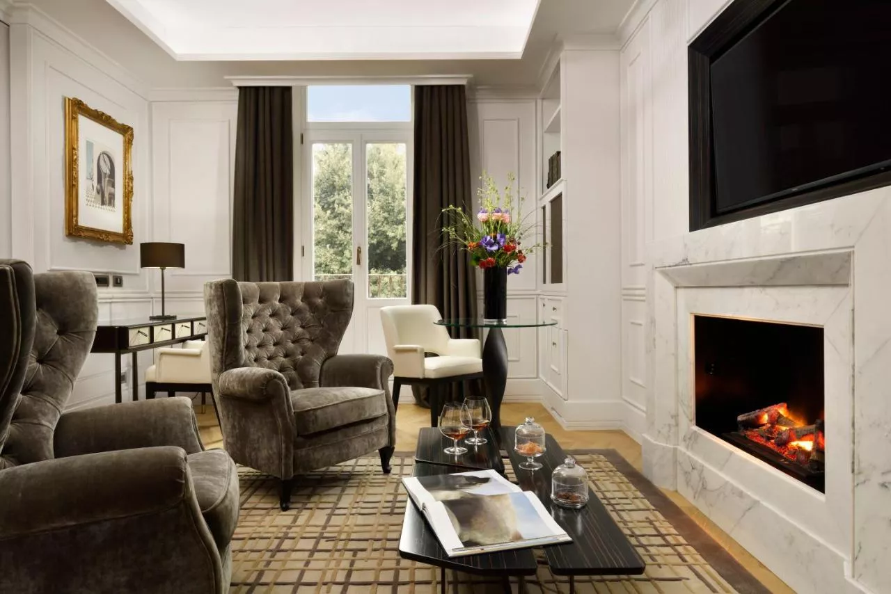 Baie: Halat de baie Prosoape Articole de toaletă gratuite Papuci de casă Uscător de păr Toaletă Duş bideu Hârtie igienică Cadă Baie privată Bucătărie: Mașină de cafea General : Seif Încălzire Izolare fonică Aer condiţionat Media/Tehnologie: TV cu ecran plat Canale cu plată TV Telefon Canale prin cablu Canale prin satelit Servicii: Serviciu de trezire Mâncăruri și băuturi: Aparat pentru prepararea de ceai/cafea Minibar Dormitor: Lenjerie de pat Zonă de living: Șemineu Facilităţile camerei: Canapea extensibilă