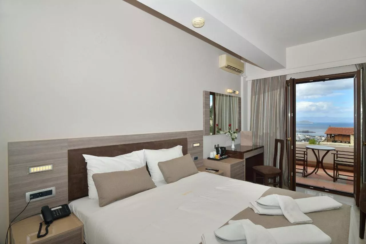 Dimensiuni: 14 mp Numar de camere: 1 camera Această cameră dotată cu aer condiționat are frigider, TV LCD cu canale prin satelit, seif și balcon privat cu vedere la Marea Cretei și la orașul Chania. Oaspeții beneficiază de acces gratuit la internet WiFi. Baie privată cu cadă sau duș