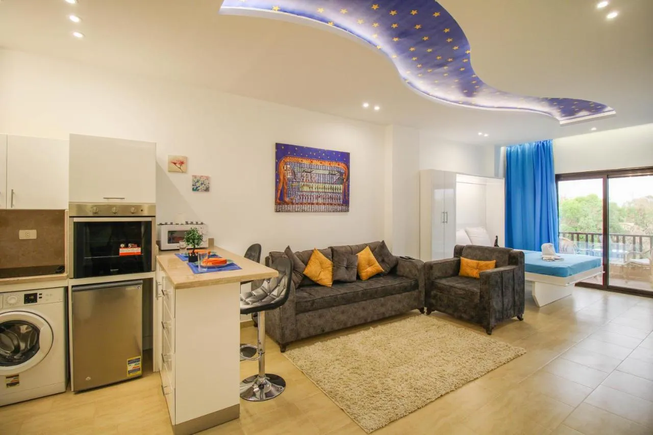 Noua Marină se află la 15 km de apartament, în timp ce Acvariul Mare din Hurghada este la 24 km distanță. Aeroportul Internațional Hurghada este la 22 km de proprietate, iar proprietatea oferă un serviciu de transfer de la/la aeroport contra cost.