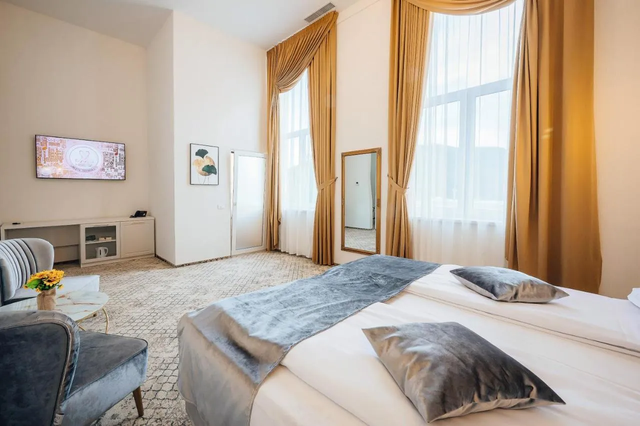 Dimensiuni: 32 mp Numar de camere: 12 camere Providing free toiletries and bathrobes, this double room includes a private bathroom with a shower, a bidet and a hairdryer. The spacious air-conditioned double room provides a flat-screen TV with cable channels, soundproof walls, a minibar, a tea and coffee maker as well as mountain views. The unit offers 1 bed.