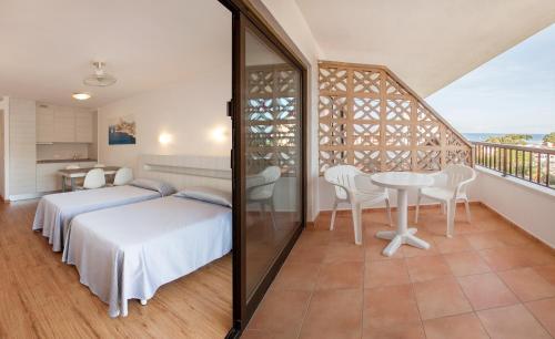 Some studios offer sea views.
