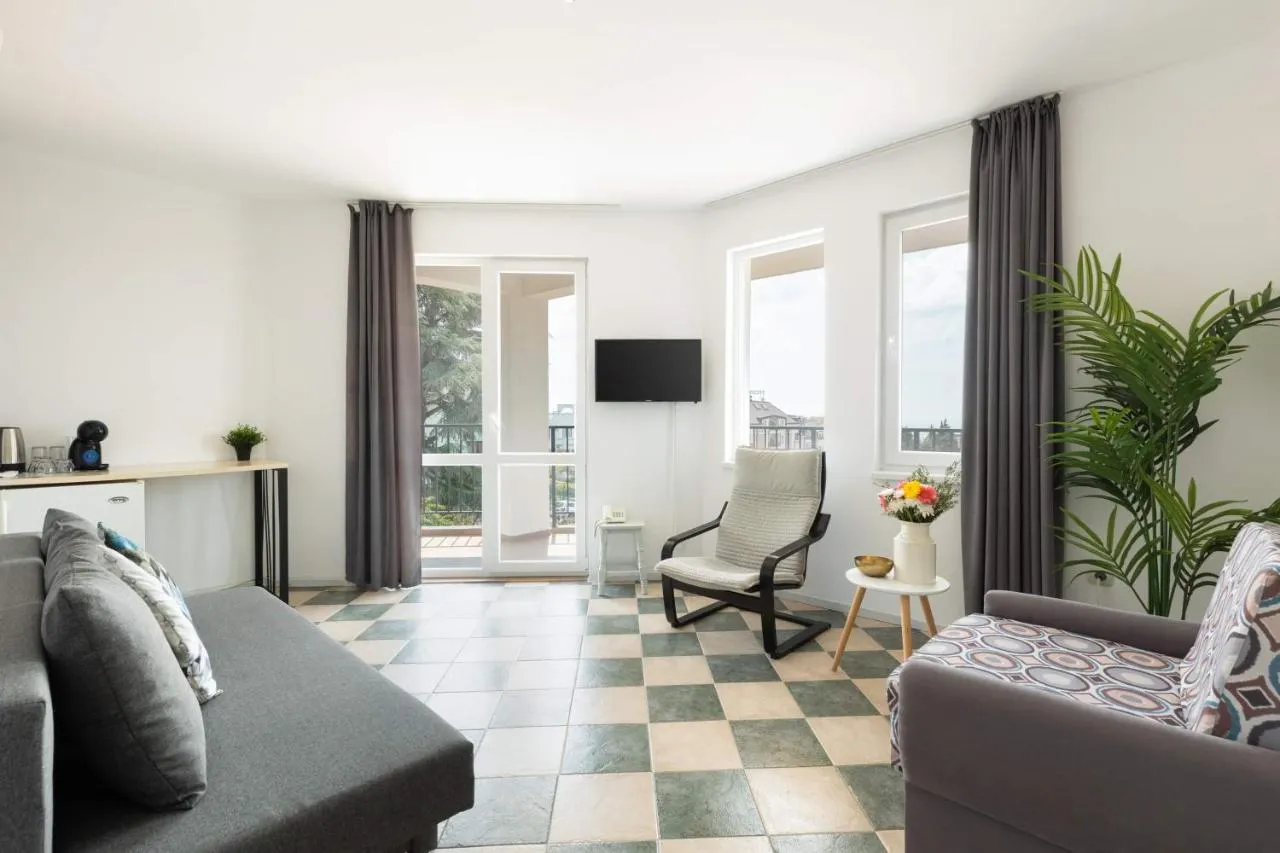 Dimensiuni: 45 mp Numar de camere: 2 camere This suite features 1 living room, 1 separate bedroom and 1 bathroom with a shower and free toiletries. The air-conditioned suite features a flat-screen TV with cable channels, a tea and coffee maker, a seating area, a wardrobe as well as sea views. The unit has 3 beds.