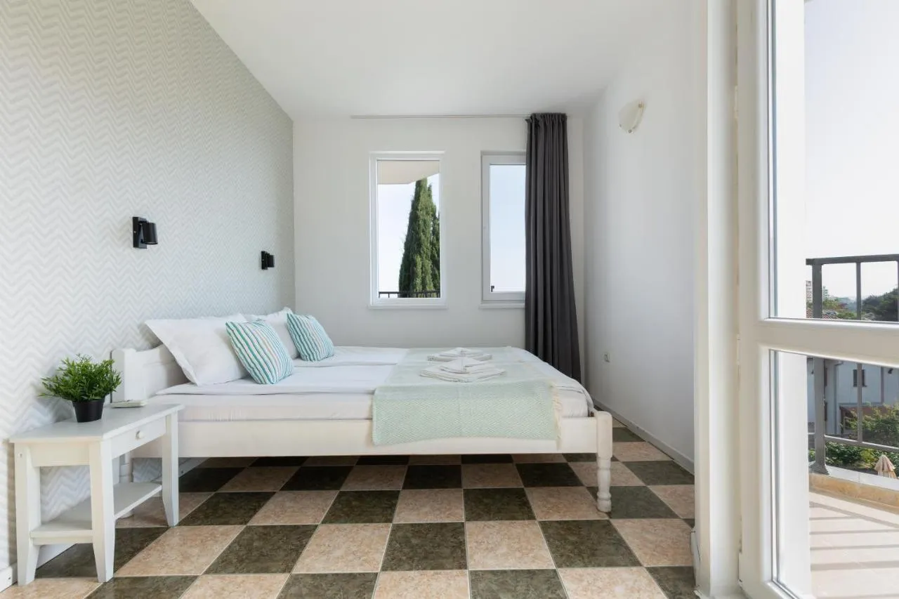 Vedere: Vedere la mare Accesibilitate: Etaje superioare accesibile doar pe scări Media/Tehnologie: TV cu ecran plat TV Telefon Canale prin cablu Exterior: Mobilier de grădină Balcon Facilităţile camerei: uscător de rufe Priză lângă pat Canapea extensibilă Baie: Prosoape Articole de toaletă gratuite Uscător de păr Toaletă Duş Hârtie igienică Baie privată Bucătărie: Frigider General : Hipoalergică Pardoseală de gresie/marmură Plasă de ţânţari Aer condiţionat Dormitor: Lenjerie de pat Garderobă sau dulap Distanțare fizică: Aer condiționat individual pentru fiecare cameră de la proprietate