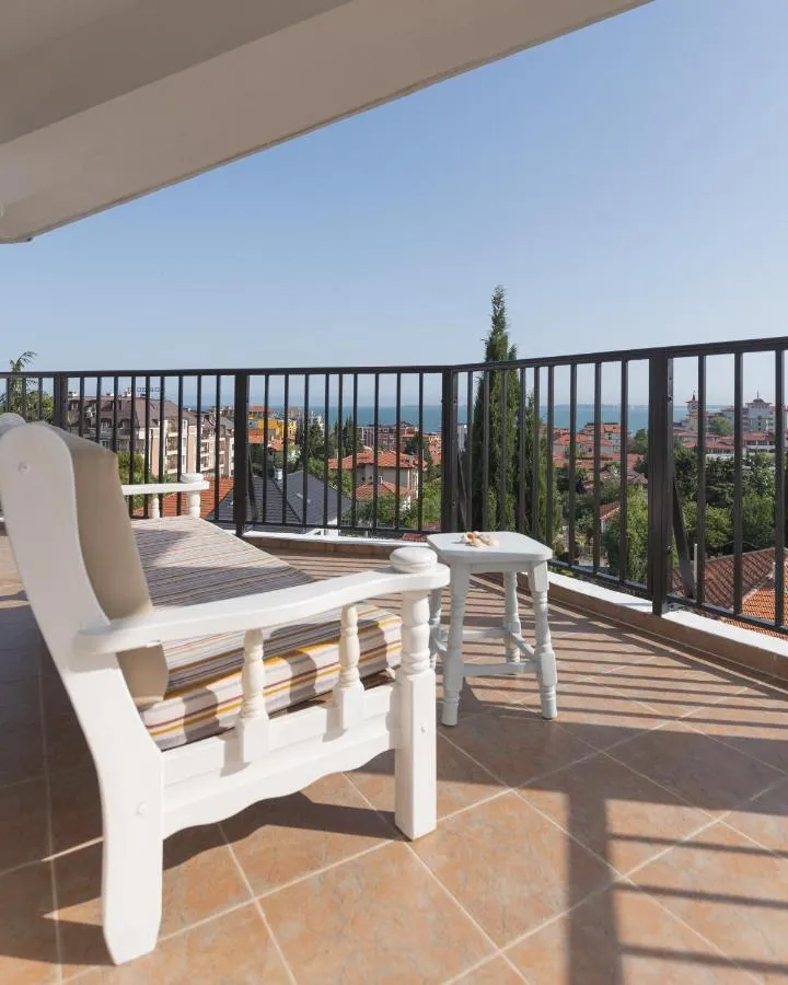Bucătărie: Mașină de cafea Frigider Cană fierbător Vedere: Vedere la mare Vedere la piscină Accesibilitate: Etaje superioare accesibile doar pe scări Media/Tehnologie: TV cu ecran plat TV Telefon Canale prin cablu Zonă de living: Canapea Zonă de relaxare Exterior: Mobilier de grădină Balcon Facilităţile camerei: uscător de rufe Priză lângă pat Canapea extensibilă Baie: Prosoape Articole de toaletă gratuite Uscător de păr Toaletă Duş Hârtie igienică Baie privată General : Facilităţi de călcat Hipoalergică Pardoseală de gresie/marmură Plasă de ţânţari Aer condiţionat Mâncăruri și băuturi: Aparat pentru prepararea de ceai/cafea Dormitor: Lenjerie de pat Garderobă sau dulap Distanțare fizică: Aer condiționat individual pentru fiecare cameră de la proprietate