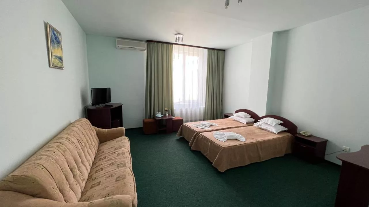 Dimensiuni: 30 mp Numar de camere: 3 camere Această cameră twin este izolată fonic și are aer condiţionat şi canapea. Baie privată cu cadă