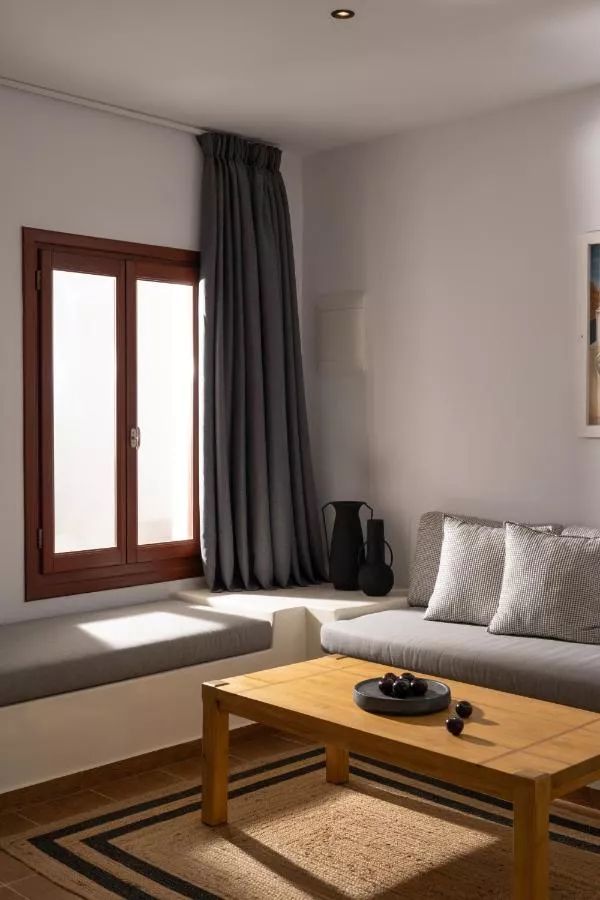 Dimensiuni: 120 mp Numar de camere: 2 camere Split in 2 levels, this elegant suite overlooks the eastern Aegean Sea and the island of Anafi from its balcony. It includes: