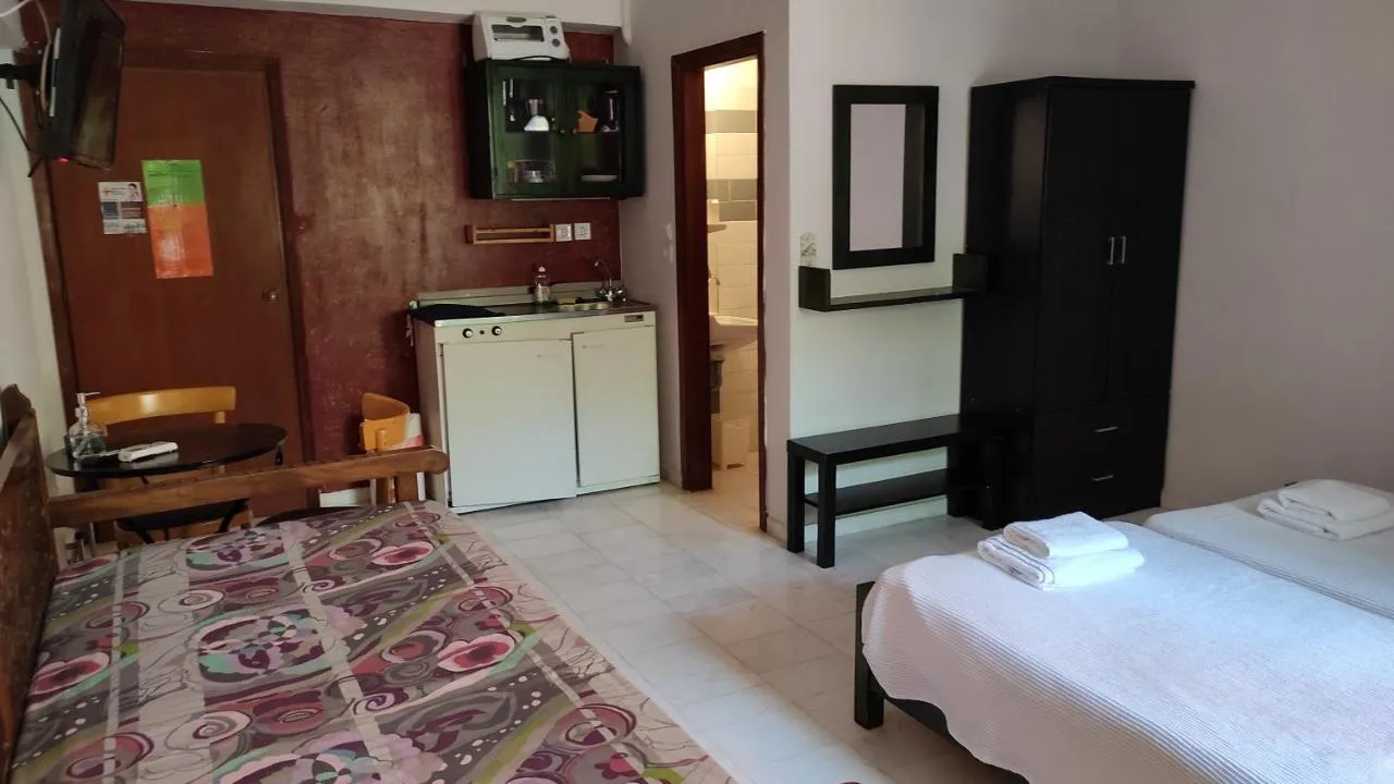 Dimensiuni: 25 mp Numar de camere: 1 camera Spacious and bright studio with patio or balcony with sea views. Each has a kitchenette with electric kettle, mini oven, cooking rings, hairdryer, air conditioning and fan.
