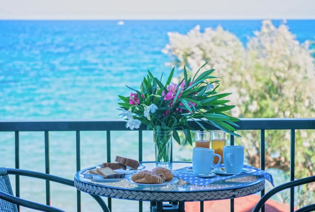 Oaspeții se pot bucura de pește proaspăt și o varietate de preparate grecești la restaurantul de pe plajă, la prânz sau cină. Prânzurile ambalate și meniurile speciale pentru diete pot fi, de asemenea, aranjate la cerere.