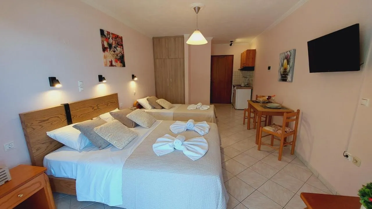 Dimensiuni: 25 mp Numar de camere: 2 camere Acest studio cu aer condiționat are o chicinetă cu zonă de luat masa, frigider și plite de gătit, precum și balcon cu vedere la Marea Ionică. De asemenea, aveți la dispoziție WiFi gratuit, un TV și un seif.