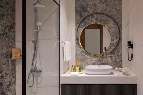 Dimensiuni: 55 mp Numar de camere: 10 camere Această cameră superioară este izolată fonic și oferă zonă de relaxare și aer condiționat. Baia privată este dotată cu duș, halat de baie, uscător de păr și papuci. Baie privată cu duș