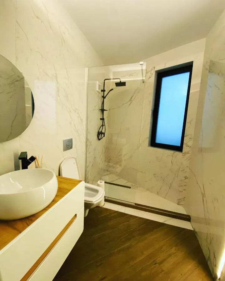Bucătărie: Masă Frigider Plită de gătit Ustensile de bucătărie Chicinetă Cană fierbător Bucătărie Uscător de haine Media/Tehnologie: TV cu ecran plat TV Serviciu de streaming (ex. Netflix) Canale prin cablu Canale prin satelit Zonă de living: Canapea Zonă de relaxare Zonă de luat masa Baie: Prosoape Articole de toaletă gratuite Papuci de casă Uscător de păr Toaletă Duş Hârtie igienică Baie privată Caracteristicile clădirii: Apartament privat în clădire Facilităţile camerei: Priză lângă pat Canapea extensibilă Mâncăruri și băuturi: Aparat pentru prepararea de ceai/cafea Minibar Dormitor: Lenjerie de pat Garderobă sau dulap General : Pardoseală de gresie/marmură Încălzire Curățenie și dezinfectare: Dezinfectant pentru mâini