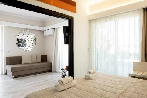 Fiecare dintre spațioasele studiouri și apartamente de la Hotelul Terinikos dispun de un aparat de cafea, frigider și un televizor LED cu satelit. Acestea au balcoane spațioase și interconectate, cu vedere la mare, grădină și deal.
