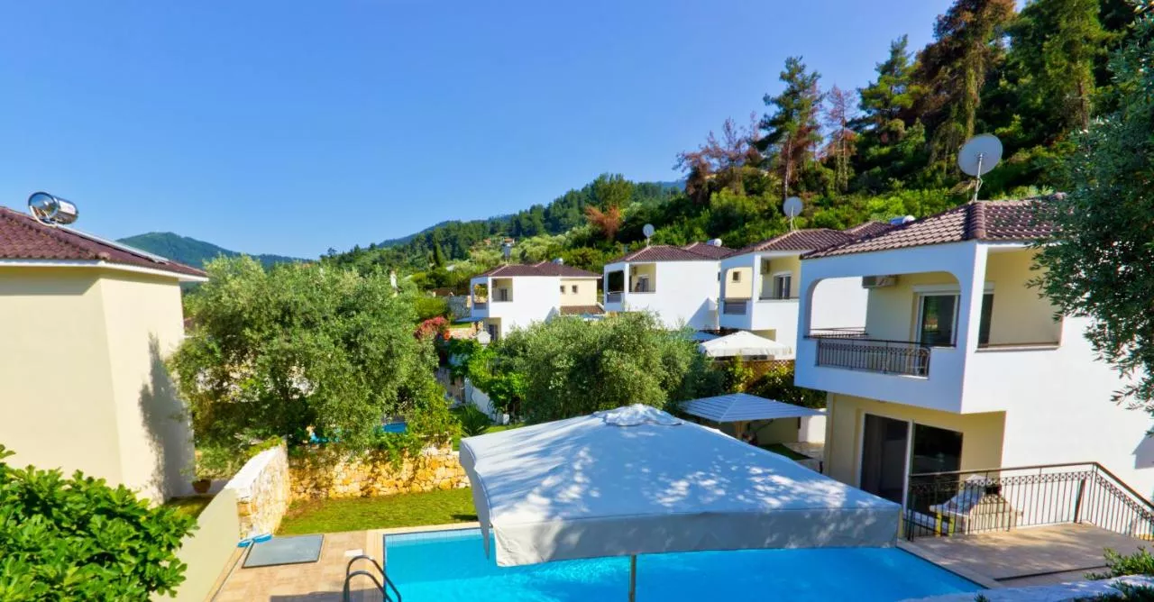 Vilele Thassian sunt situate pe versantul unui deal, oferind priveliști spre cetatea din Thassos, port și mare. Acestea oferă vile mari cu piscine private, la 400 de metri de Plaja Tarsanas.