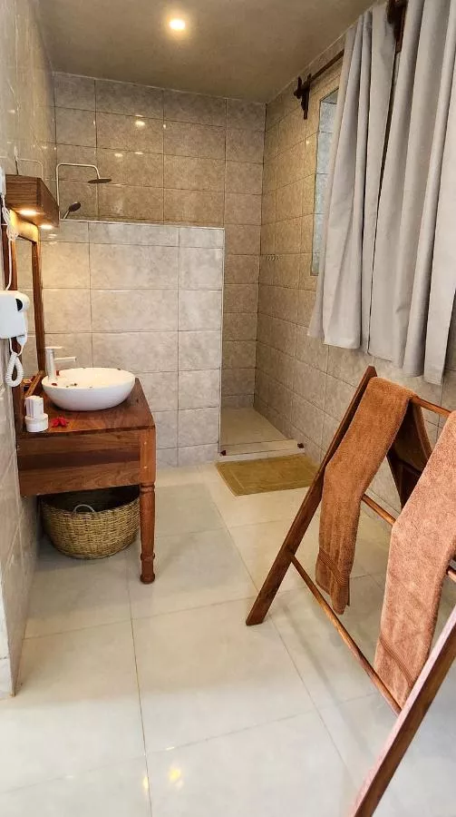 Dormitorul dublu mare are ventilator, aer condiționat şi uși mari glisante, din sticlă. Vă rugăm să rețineți că tariful este valabil pentru 2 persoane. Baie privată cu duș