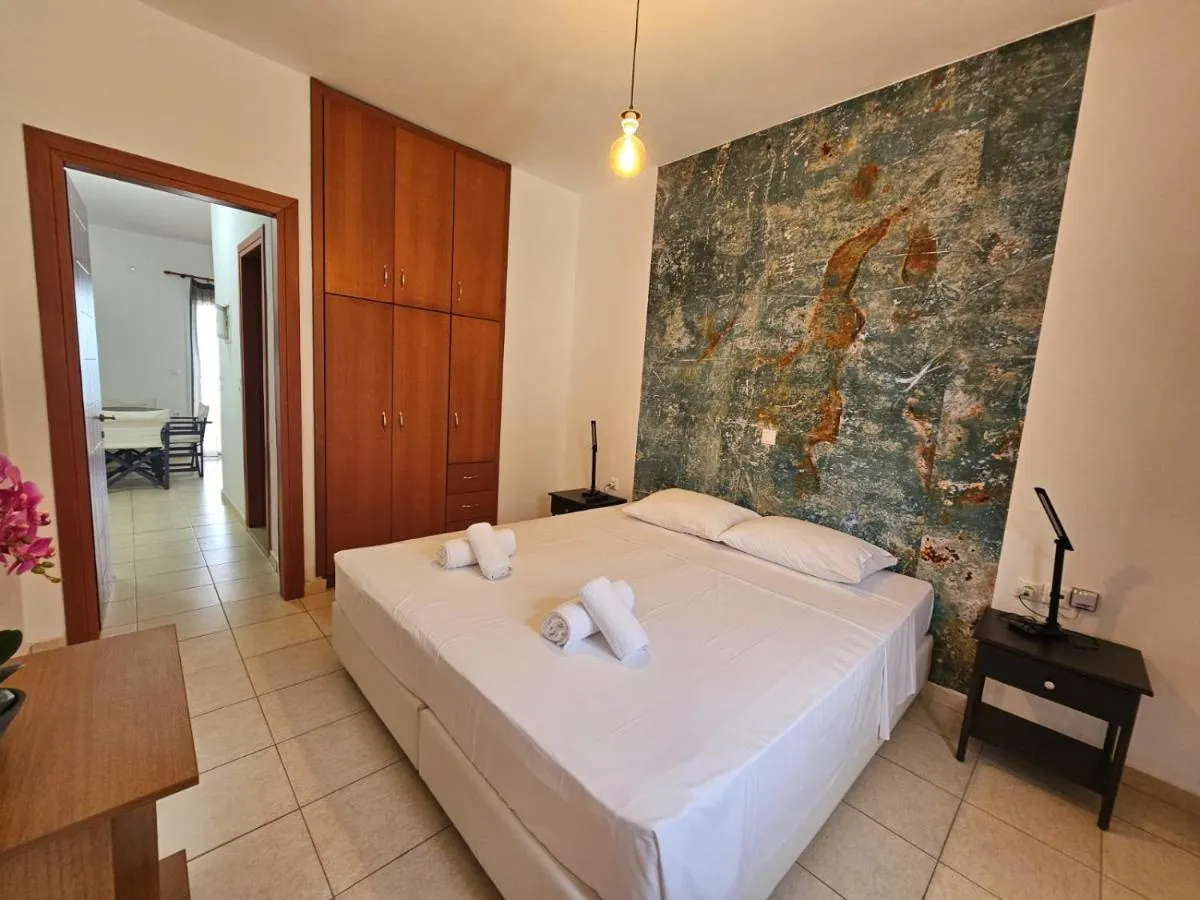 Dimensiuni: 35 mp Numar de camere: 6 camere Just 10 metres from the beach, this room overlooks the Libyan Sea from its furnished balcony. It offers air conditioning, TV (doesn't show Greek channels), mini fridge and a hairdryer in the bathroom. Baie privată cu cadă