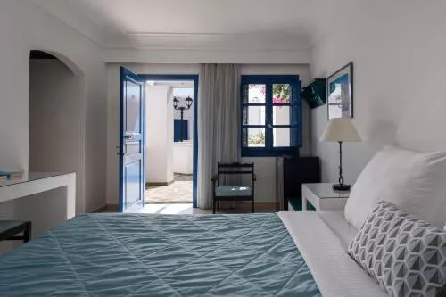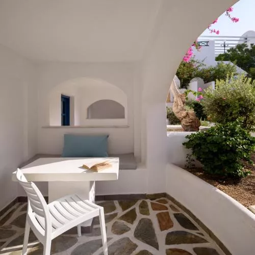 Hotelul Veggera, construit în stil neoclasic și cicladic, oferă camere tradiționale și apartamente cu televiziune prin satelit. Toate unitățile au balcon privat cu vedere la mare, la piscină sau la grădină.