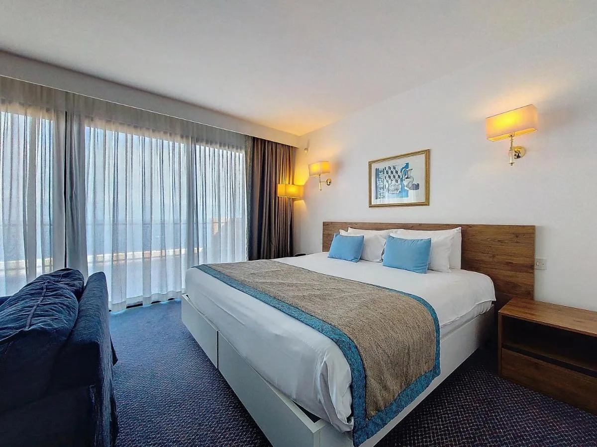 Dimensiuni: 45 mp Numar de camere: 2 camere The air-conditioned suite features 1 bedroom and 1 bathroom with a bath and a hairdryer. The suite offers soundproof walls, a minibar, a tea and coffee maker, a flat-screen TV with cable channels, as well as sea views. The unit offers 1 bed.