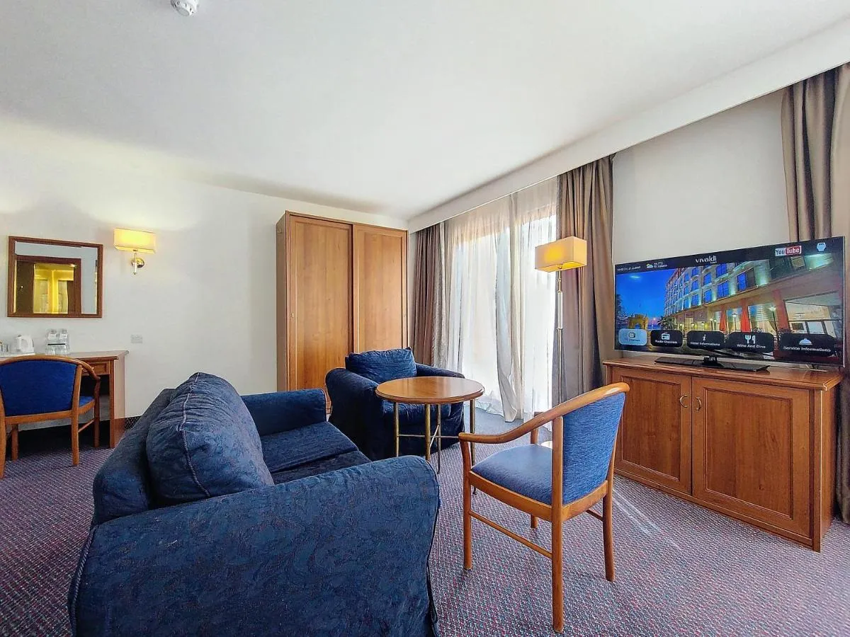 Dimensiuni: 45 mp Numar de camere: 3 camere This suite features 1 living room, 1 separate bedroom and 1 bathroom with a bath and free toiletries. The air-conditioned suite features a flat-screen TV with cable channels, soundproof walls, a minibar, a tea and coffee maker as well as sea views. The unit has 2 beds. Baie privată cu cadă