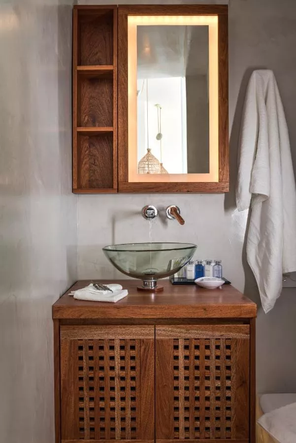 Lying a few meters from the main complex, the villa opens out on a shared terrace, where you can enjoy your moments of relaxation, soaking into the private heated hot tub, and admiring the majestic views of the caldera, the Aegean Sea, and the magical sunset.