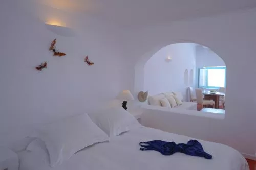 Construit pe 3 niveluri, complexul se mândrește cu unele dintre cele mai mari terase private din Santorini, majoritatea cu piscină privată sau cadă cu hidromasaj. White Santorini oferă suite elegante, fiecare cu un living separat și o baie luxoasă.